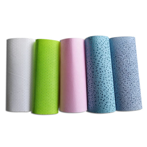 Printed Woodpulp Polyester Spunlace Nonwoven for industrial or kitchen clean wipes. Xiamen DSY Textile Co.,Ltd specializes in producing nonwoven fabric and compounded nonwoven fabric. We can supply Jumbo reel spunlace non woven fabric for wet wipes, Parallet and cross style, different pattern like plain, honeycomb, mesh, bubble, heat shape. etc.