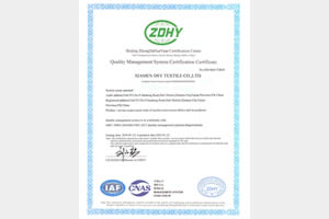 DSY Textile got ISO9001 certificate for both production and management system in 2019.